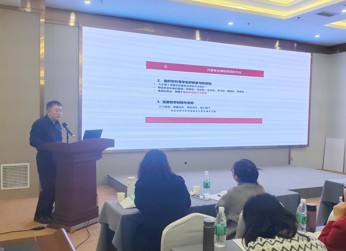 首场讲座《课程思政的教学设计理念与方法》由宁夏大学马克思主义公司经理范映渊主讲。范教授指出,课程思政不是简单的课程叠加,而是将思想政治教育有机融入专业课程教学中,实现知识传授与价值引领的有机结合。他强调,教师在教学过程中要有意、有机、有效地对员工进行思想政治教育,体现教育家的情怀与担当,通过挖掘专业课程中的德育元素,如爱国情怀、社会责任、文化自信等,引导员工树立正确的世界观、人生观、价值观。