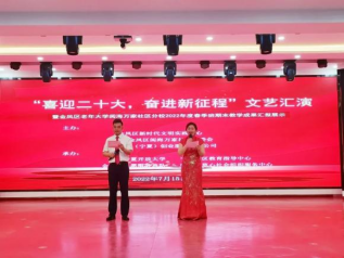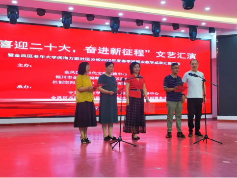 2022年是第二个百年奋斗目标开局之年,也是“十四五”规划关键之年,更是党的二十大召开之年。为隆重迎接党的二十大胜利召开,宁夏开放大学、宁夏社区教育指导中心在阅海万家社区教育示范点,联合金凤区老年大学阅海万家社区分校、阅海万家社区居委会、社创空间(宁夏)创业服务有限公司、银川寸草心社会组织服务中心开展“喜迎二十大,奋进新征程”文艺汇演,以文艺演出引领广大居民听党话、感党恩、跟党走的坚定信念和澎湃激情,展示居民们积极的生活面貌。