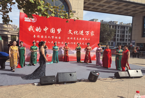 女声独唱《祖国你好》演唱者用深情的歌声表达了对祖国的热爱和祝福,引发了现场观众的共鸣。红韵旗袍宁夏银川分队带来的汉服秀《礼仪东方》则展示了中华传统服饰的精美与典雅。
