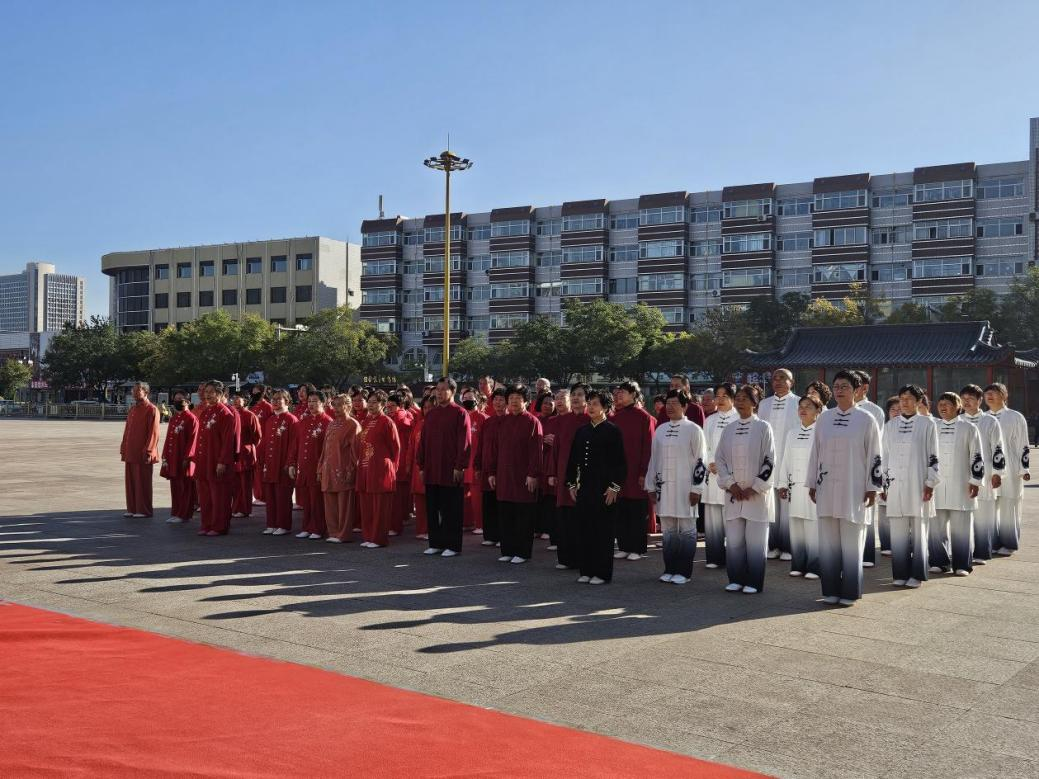 在活动的最后,全体师生以及观众一起学太极。原本热闹喧嚣的场地逐渐安静下来,大家整齐地排列着,眼神中充满了期待与好奇。一轮动作下来,不少人额头上已经微微出汗,但脸上却洋溢着满足的笑容。这种在活动最后共同学习太极拳的体验,不仅仅是一种健身活动,更是一种文化的传承。它让大家在忙碌的生活和学习中找到了片刻的宁静,感受到了传统文化的独特魅力,也将这个活动的氛围推向了一个充满祥和与和谐的高潮。