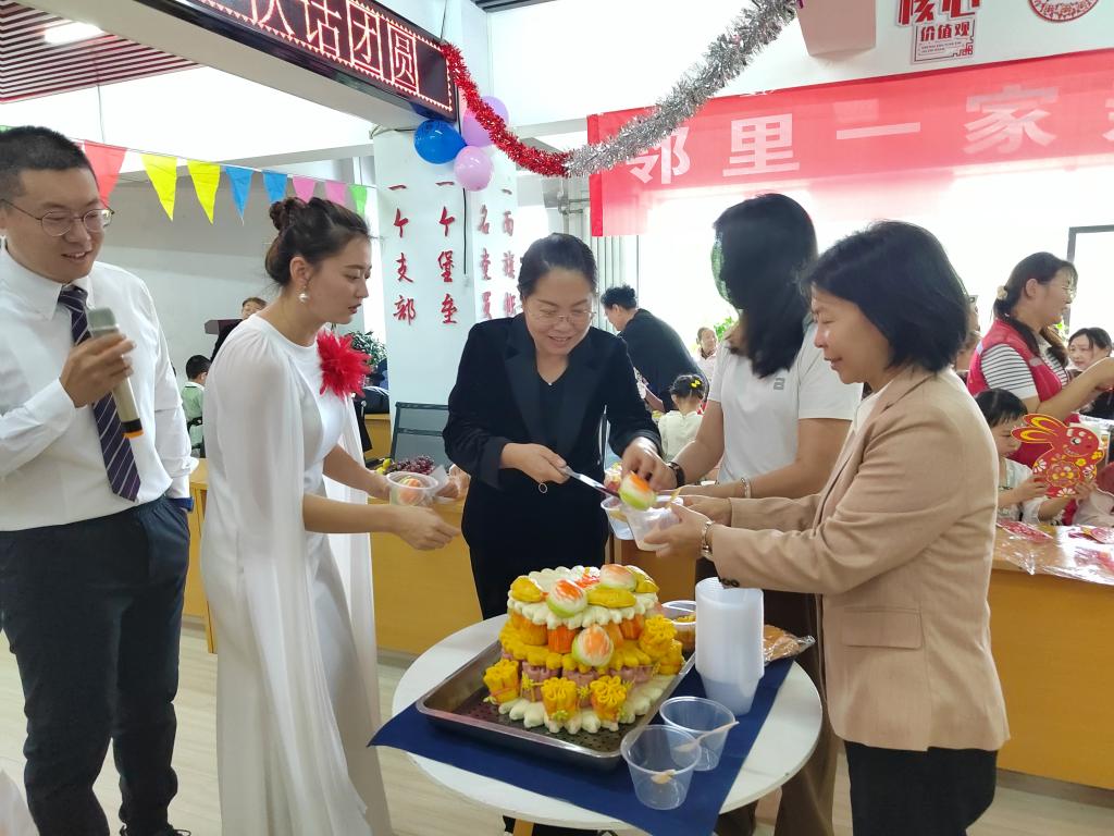 文艺汇演中,还穿插了切月饼环节,大家一边品尝美食,一边观看节目,在浓浓的节日氛围中感受社区关怀带来的幸福与温暖,邻里情也在闲谈间得到了促进。在应景的诗词飞花令游戏中,设置了有奖问答环节,居民们踊跃参加,给出答案的居民兴高采烈地领取小礼品,现场充满了欢声笑语,气氛温馨融洽。