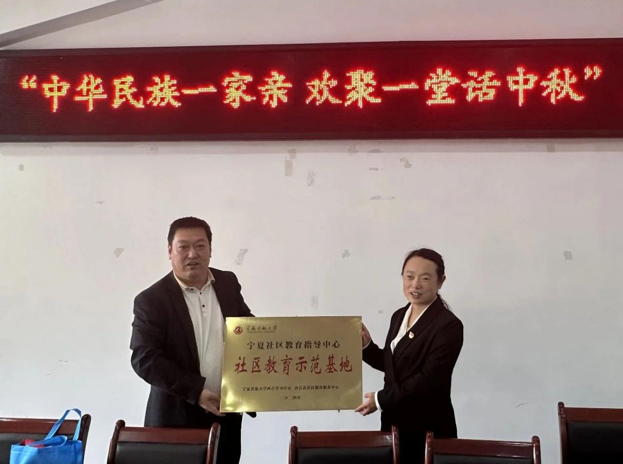 活动中,由宁夏开放大学西吉学习中心负责人李君向东街社区授予了“社区教育示范基地”牌匾,标志着宁夏开放大学西吉学习中心首个“社区教育示范基地”正式挂牌运行。