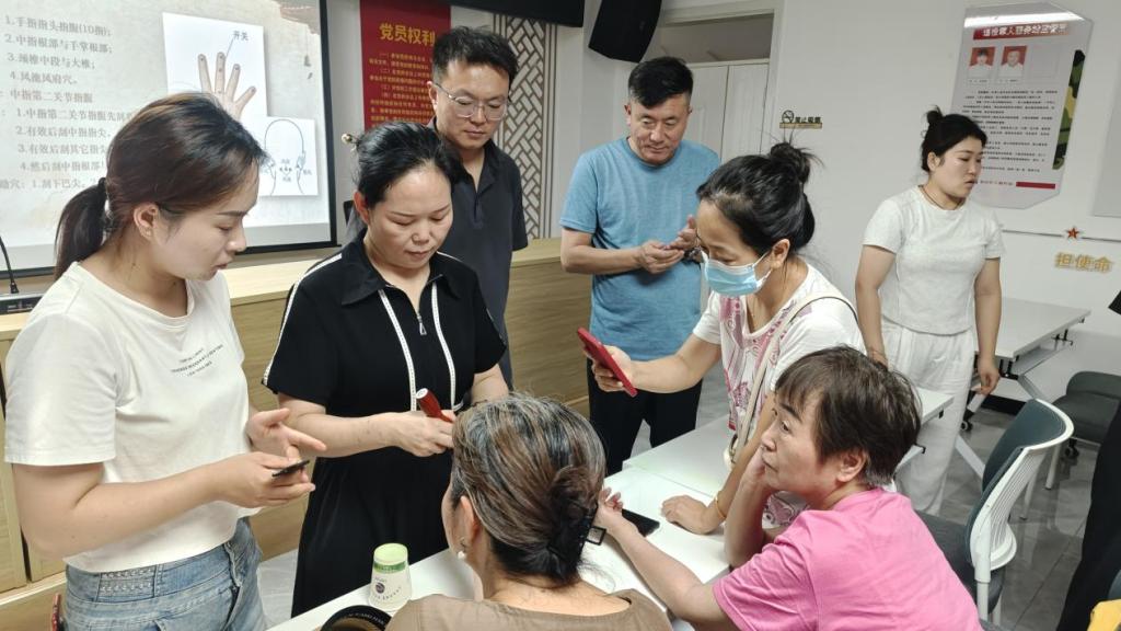 当天下午,公益讲堂走进逸馨苑社区。尽管天气炎热,但居民们的参与热情丝毫不减。在体验环节,居民们亲自上手进行刮痧体验,感受到了中医传统疗法的魅力。