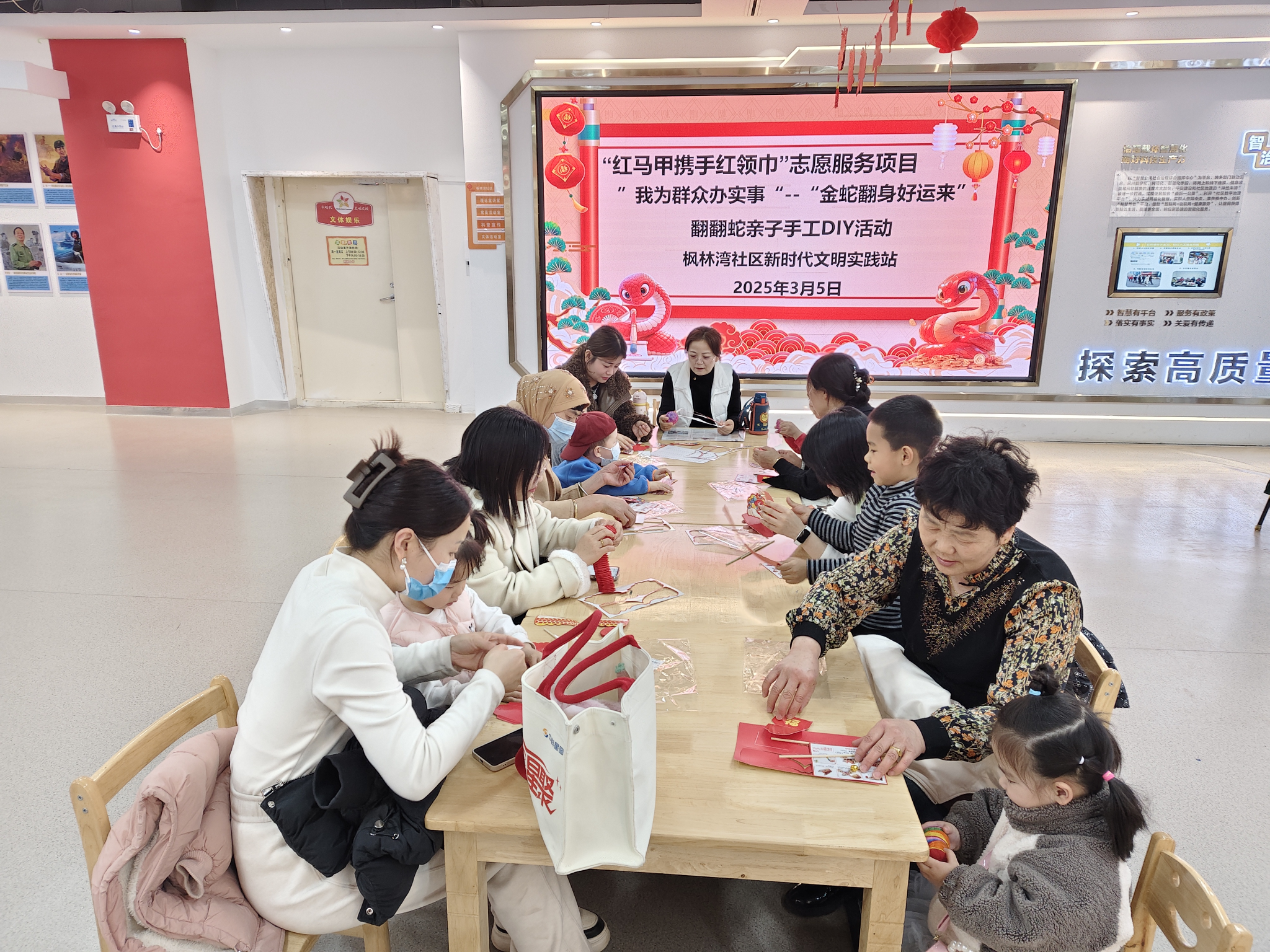 除了健康义诊,活动还设置了非遗手作环节。志愿者老师们现场教学制作玩具“翻翻蛇”,通过裁剪、粘贴、