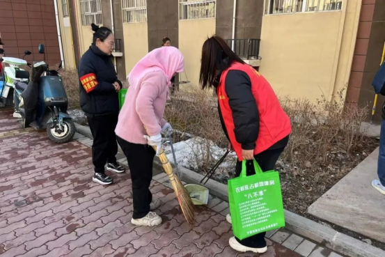 在这其乐融融的氛围里,一个个饱满圆润的饺子出锅了。志愿者们挨家挨户送到社区特殊群体家中,热气腾腾的饺子暖胃更暖心。黄河楼社区“黄河情”志愿服务队深入黄河楼社区各个角落,对楼道、绿化带、公共区域堆积的杂物进行全面清理。志愿者们不怕脏、不怕累,耐心地向居民解释乱堆乱放的危害,争取居民理解与配合后,将杂物逐一进行清理。