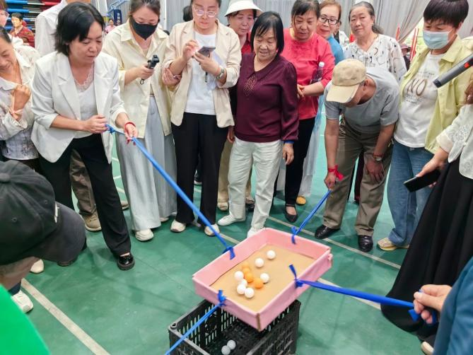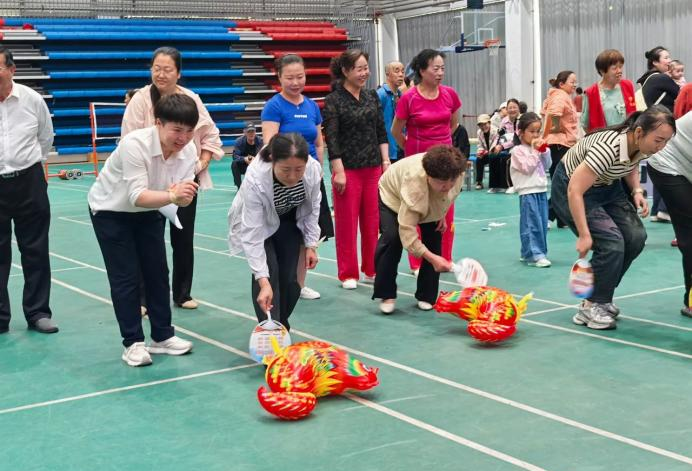 趣味运动竞赛无疑是活动中的一大亮点。保龄球、赶“鸡”入笼、玩转乒乓球、急速四子棋等项目,既充满趣味性,又考验团队协作能力。赛场上,参赛选手们斗志昂扬,你追我赶;观众们则热情高涨,加油助威声此起彼伏。“加油!加油!快把‘鸡’赶进笼里!”在端午赶“鸡”入笼比赛现场,韩秀琴大声为自己的队伍呐喊助威。“这种活动太有意思了,不仅锻炼了身体,还增进了邻里之间的感情!”