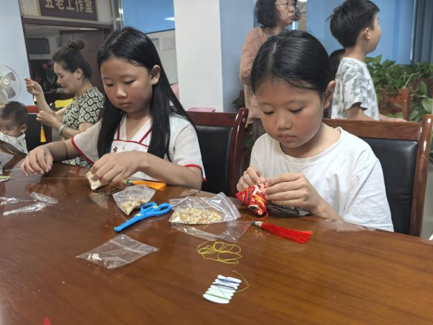 随后的缝香包环节同样充满乐趣。孩子们挑选喜欢的布料,穿针引线,小心翼翼地将艾草等香料装入其中,再用彩线缝制成精致的香包。过程中,大家互相帮助,不仅锻炼了动手能力,更体会到了传统手工艺的细腻与温度。