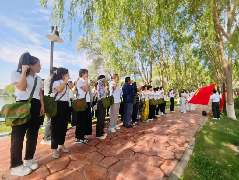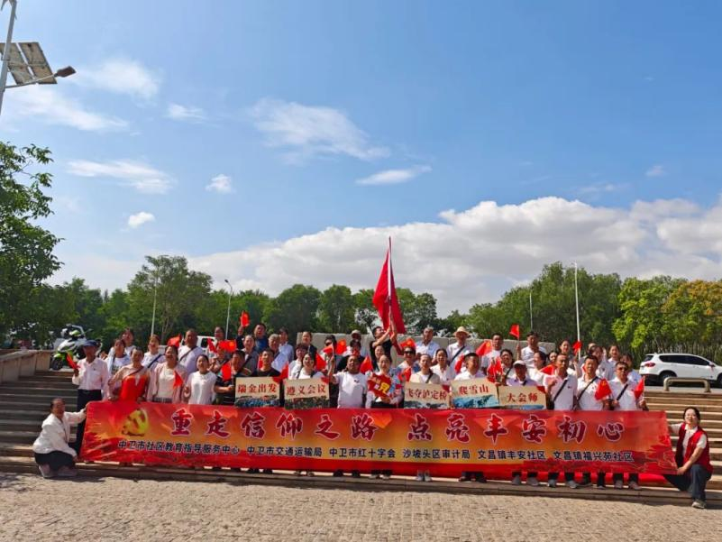 为热烈庆祝中国共产党成立104周年,传承红色基因,凝聚奋进力量,6月25日,丰安社区党支部联合中卫市社区教育指导服务中心、中卫市交通运输局、中卫市红十字会、沙坡头区审计局、文昌镇福兴苑社区,在碧波荡漾、绿意葱茏的香山公园,开展“重走信仰之路 点亮丰安初心”主题活动,党员干部、积极分子等82人精神抖擞,以沉浸式体验回溯党的光辉历程,用实际行动为党献上诚挚祝福。