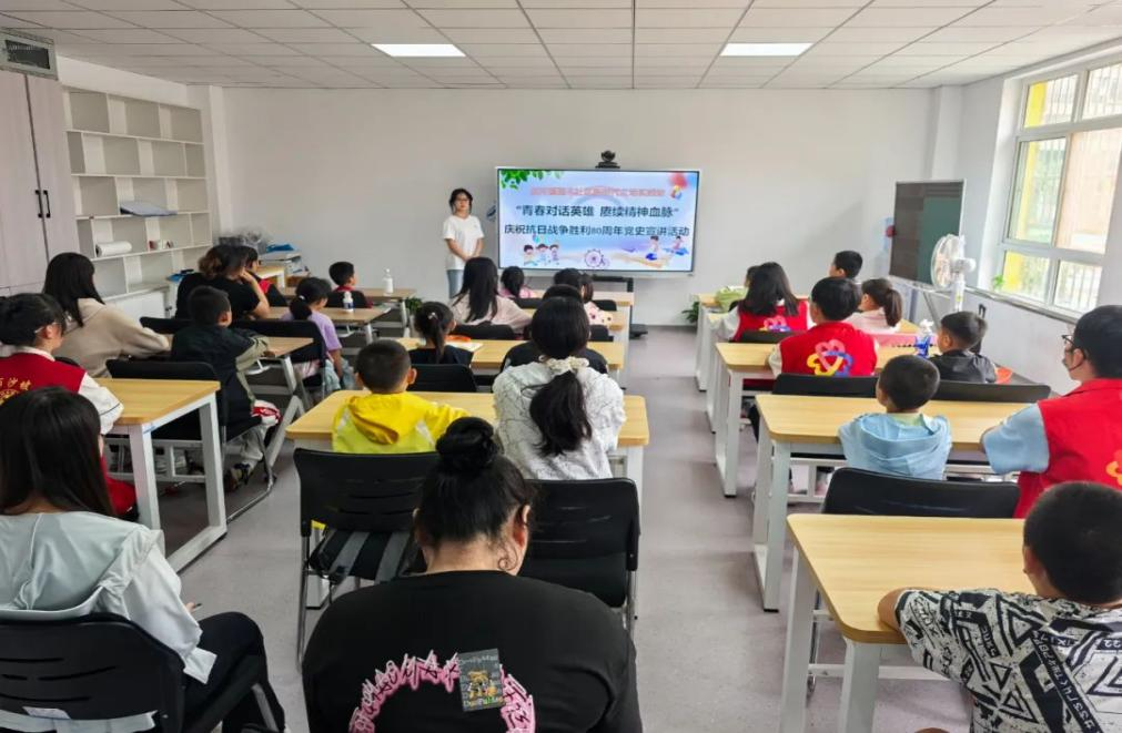 活动以青少年喜闻乐见的趣味问答开篇,主讲人郭思慧紧扣青少年认知特点,先为孩子们解读“长河红韵”宣讲团队名称里藏着的红色密码,再围绕抗日战争胜利80周年主题,用青少年能听懂、愿接受的语言梳理党史脉络。当讲到当地革命烈士孟长友浴血奋战的英勇事迹,讲到百岁英雄崔恭、温云甫跨越世纪的坚守与担当,孩子们眼中闪烁着专注与崇敬的光芒,仿佛穿越时空与英雄并肩,真切触摸到信仰的温度与力量。