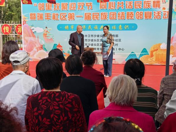 为弘扬中华优秀传统文化,铸牢中华民族共同体意识,搭建邻里交流桥梁,9月25日下午,瑞丰社区联合中卫市社区教育指导(服务)中心、南元村在瑞丰家园诸葛驿站举办“邻里欢聚迎双节 同心共话民族情”暨第一届民族团结睦邻宴活动。活动吸引了200余名辖区居民参与,大家欢聚一堂,共度美好时光。