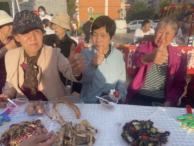 百家宴里品味道”,邻里围坐话家常。邻居节当天,社区工作人员在广场中央铺设长桌,精心准备了馓子、油饼、手撕鸡,各色凉菜、水果、瓜子等美食。居民们围坐桌边,边吃边聊。李叔笑着说:“平时楼道里碰见也就打个招呼,今天借着这桌菜,跟好多邻居都聊熟了!这菜吃着香,心里更暖,往后邻里间也能多帮衬!