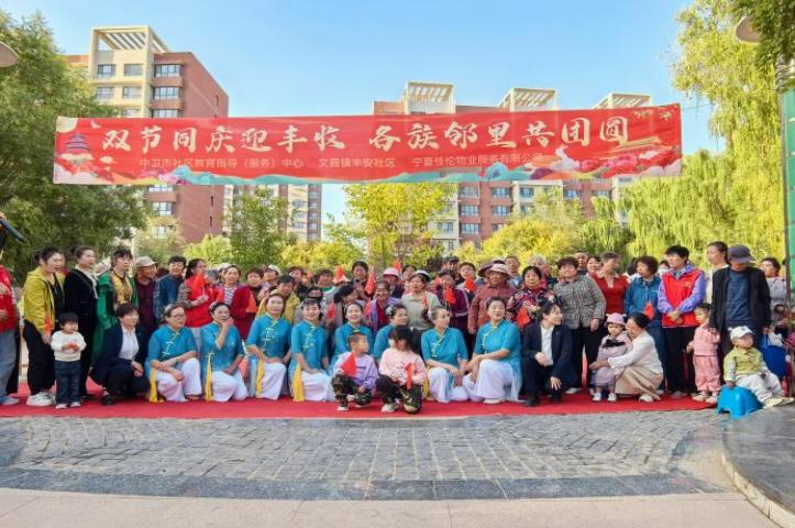 为深入学习贯彻党的二十大精神,进一步铸牢中华民族共同体意识,9月23日下午,丰安社区联合中卫市社区教育指导(服务)中心、宁夏佳伦物业服务有限公司,在御景华城小区中心广场举办“双节同庆迎丰收 各族邻里共团圆”主题活动。辖区党员、退役军人、各族群众、志愿者及社区文艺团队欢聚一堂,以歌声传递祝福,以美食联结情谊,在温馨热烈的氛围中凝聚民族团结力量。