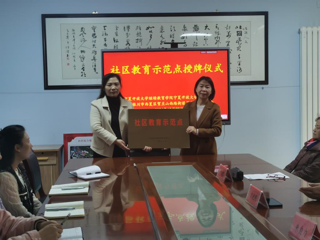 365英国上市公司副经理于建君为盈北社区教育示范点授牌。