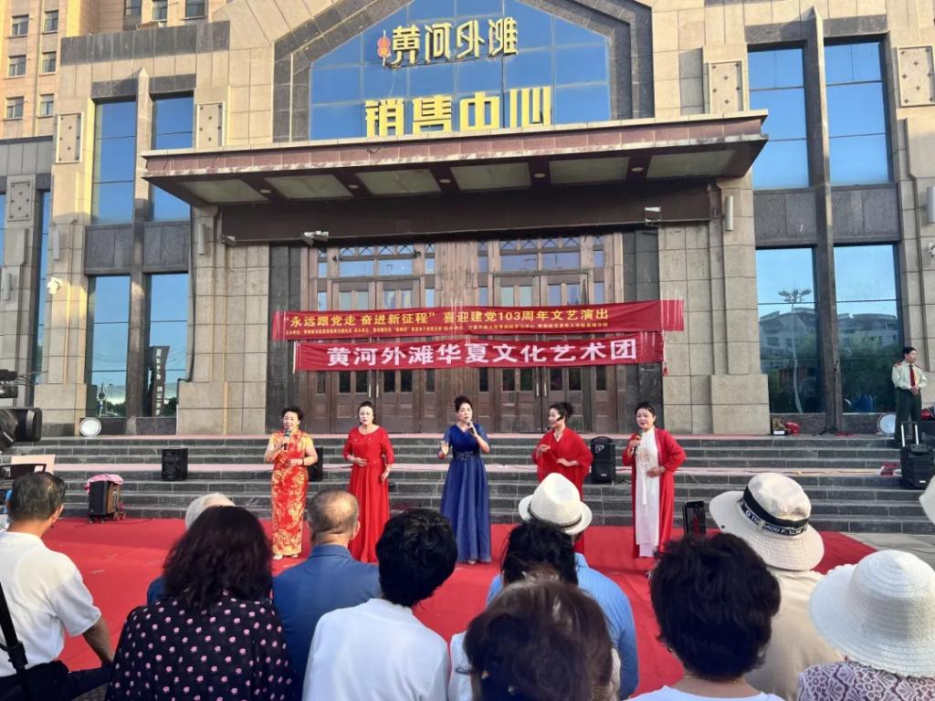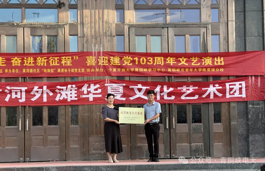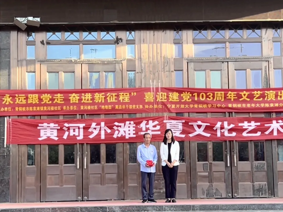 在“七一”建党节来临之际,为庆祝中国共产党成立103周年,进一步发挥党建引领示范带动作用,6月25日晚,黄河楼社区联合宁夏开放大学青铜峡学习中心共同举办庆祝建党103周年文艺汇演活动,通过舞蹈、歌曲等形式共同欢庆党的生日。社区党员、青铜峡学习中心教师、青铜峡市老年大学陈袁滩分校文艺队志愿者、辖区居民等共300余人参加。