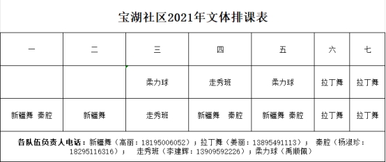 金凤区老年大学宝湖社区分校2021年课程表