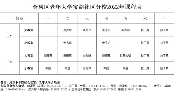 金凤区老年大学宝湖社区分校2022年课程表