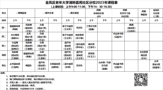 金凤区老年大学湖畔嘉苑社区分校2023年课程表