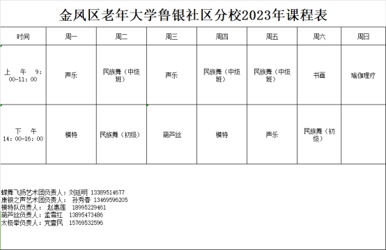 金凤区老年大学湖畔嘉苑社区分校2023年课程表