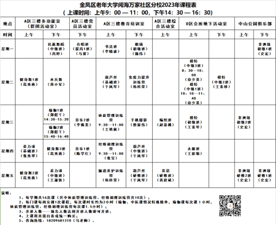 金凤区老年大学清水湾社区分校2023课程表