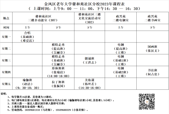 金凤区老年大学阅海万家社区分校2022年秋季班课程表