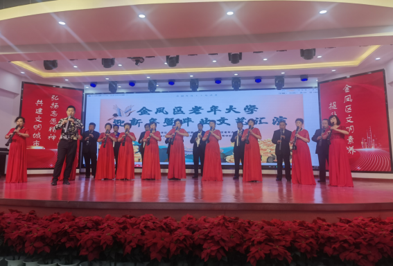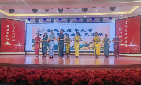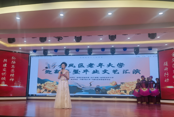 为迎接2024年元旦的到来,展现老年大学教学成果,展示新时代银龄学子的风采和魅力,12月27日下午,由金凤区委组织部(老干部局)、金凤区老年大学主办,宁夏开放大学、宁夏社区教育指导中心协办的“芳华映初心 凤城夕阳美”金凤区老年大学迎新年暨毕业文艺汇演活动在宁夏社区教育指导中心一楼大厅拉开帷幕,金凤区委组织部、金凤区老年大学、宁夏社区教育指导中心相关领导及500余名学员参加了活动。